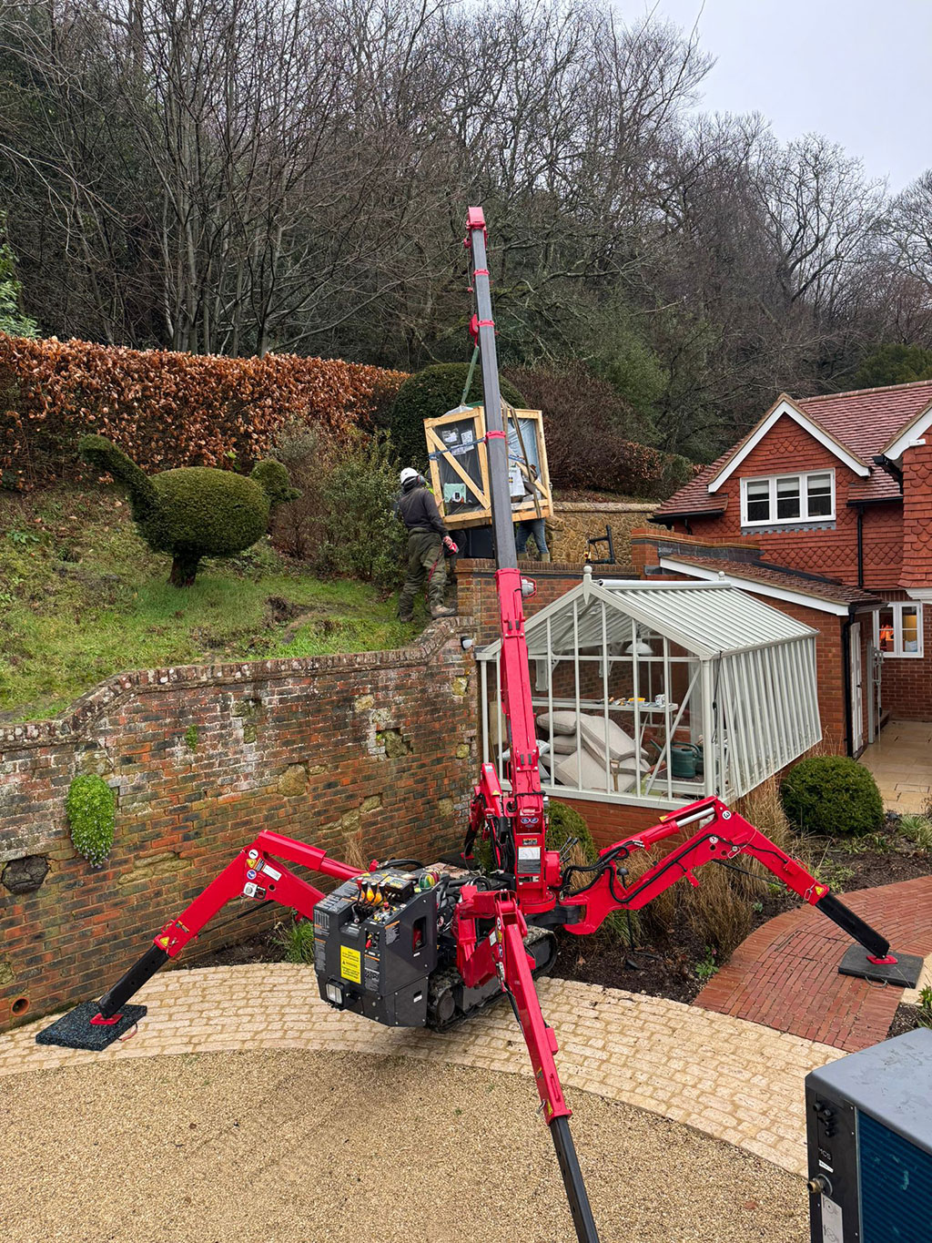 To facilitate our own onsite installations, we use a spider crane for assembly but customers with other needs can still choose to hire this plant, which comes to site with a trained operator.